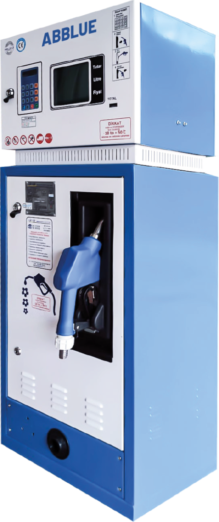 Evaluation Certificate No: ZR 141/15-0117 Tüm ABBlue dispenserlerimizde 4 pistonlu, ayarlanabilir (± % 0,25 = Binde 2.5 ölçme hassasiyetinde) metreler kullanılmaktadır.totalizatör: Dispenserlerimizde 10 haneli Litre, Para, Vardiya Litre ve Vardiya Para bilgilerini verebilen elektronik totalizatörlere ilaveten, 7 haneli elektromekanik totalizatörler de kullanılmaktadır.Keyboard: 16 tuşlu, mambran veya buton tipli, kullanışlı ve sağlam tuş takımı Display: 1” (25.4 mm) yüksekliğinde LCD göstergede Para Tutarı 6 hane, Litre Tutarı 6 hane, Birim Fiyat ise 4 hanedir. Tek ekran seçeneğimiz de mevcuttur.Tabanca ve Hortum: Normal dispenserlerde 3/4 aluminyum gövdeli tabancalar kullanılmaktadır. Hortumlar da aynı şekilde 3/4” veya 1” çaplarındadır. Kullanımı kolaylaştırmak için 360° dönebilen mafsallar kullanılmaktadır.